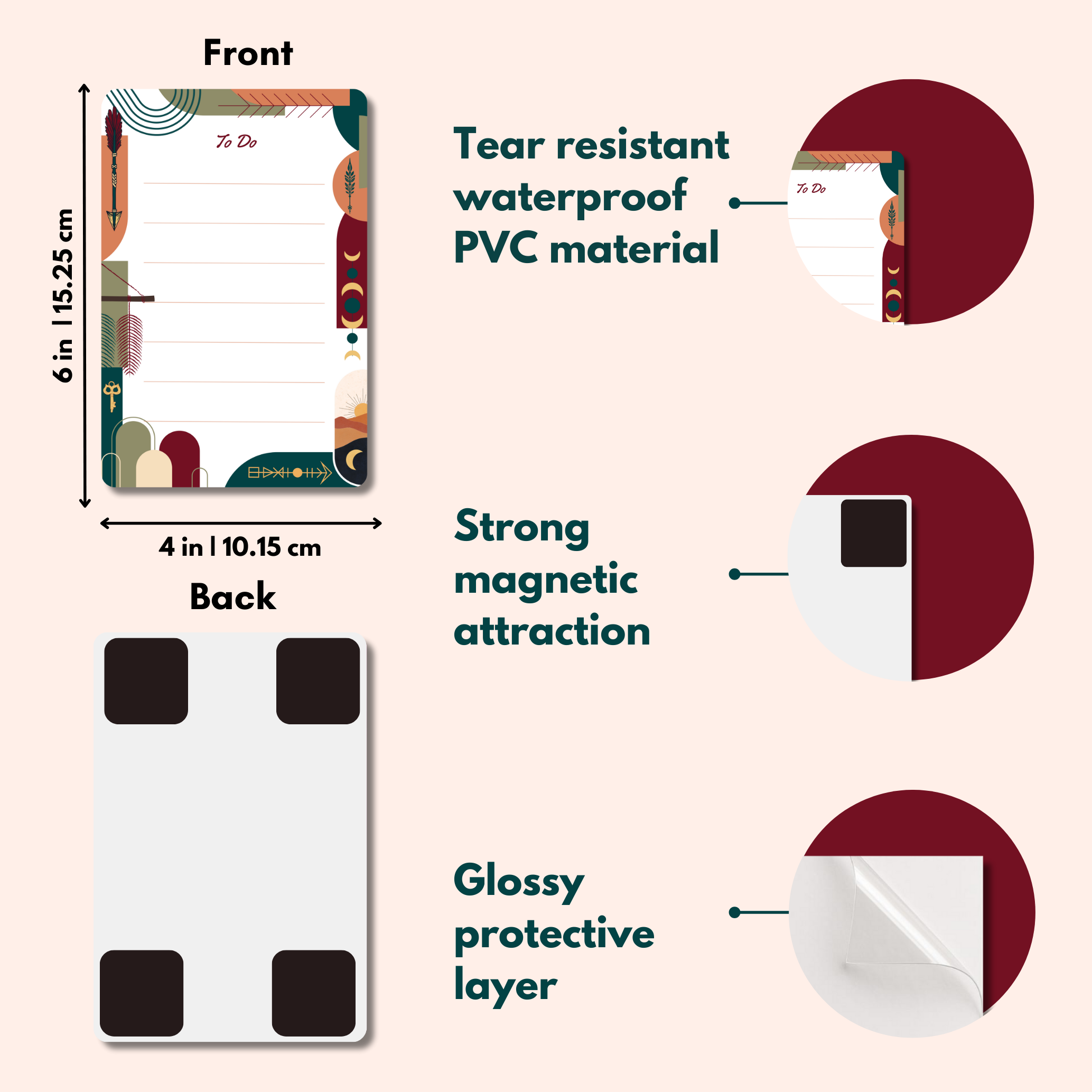 - DIMENSIONS: Large 15.25 x 10.15 cm magnetic to-do list notepad with waterproof PVC material, perfect for daily organisation and planning