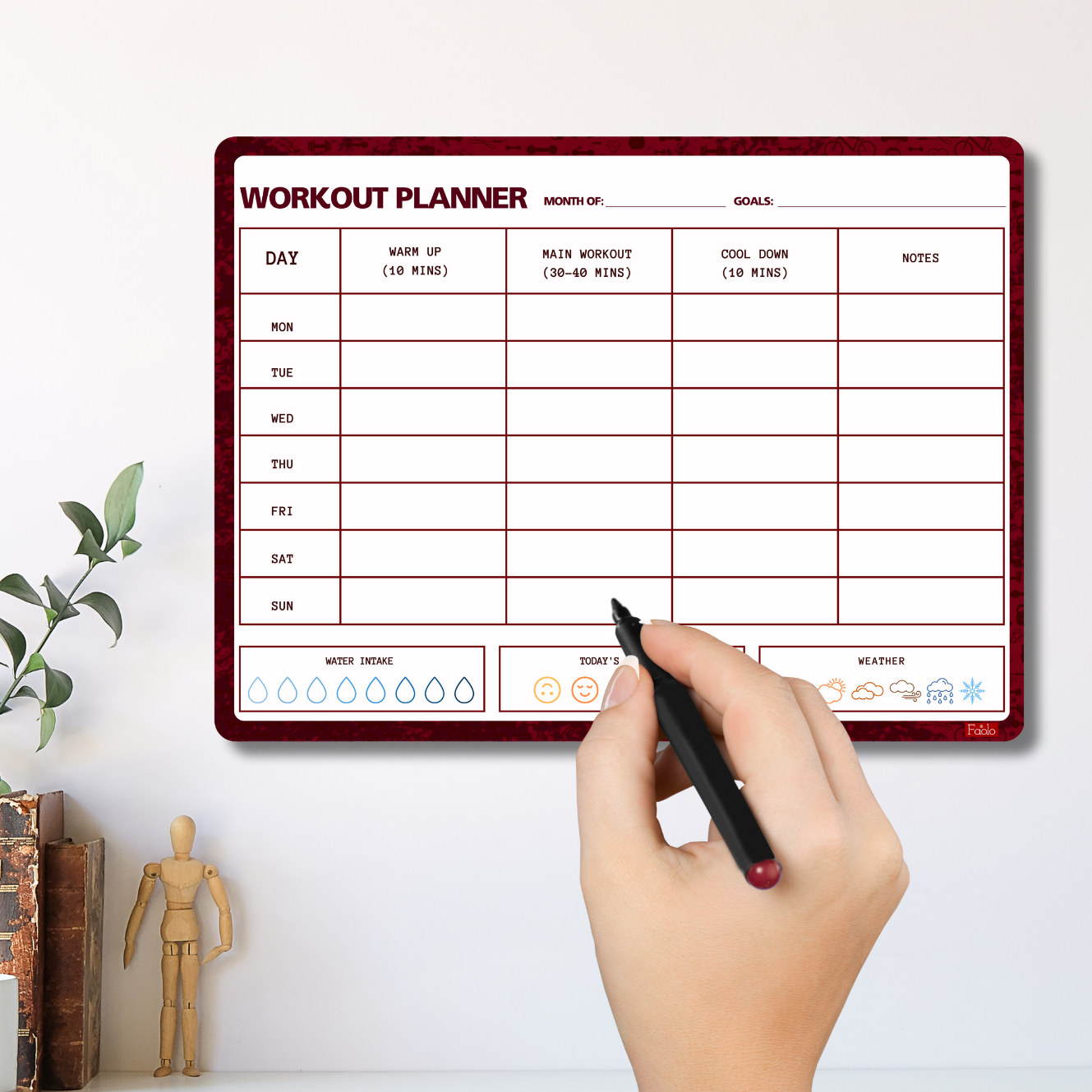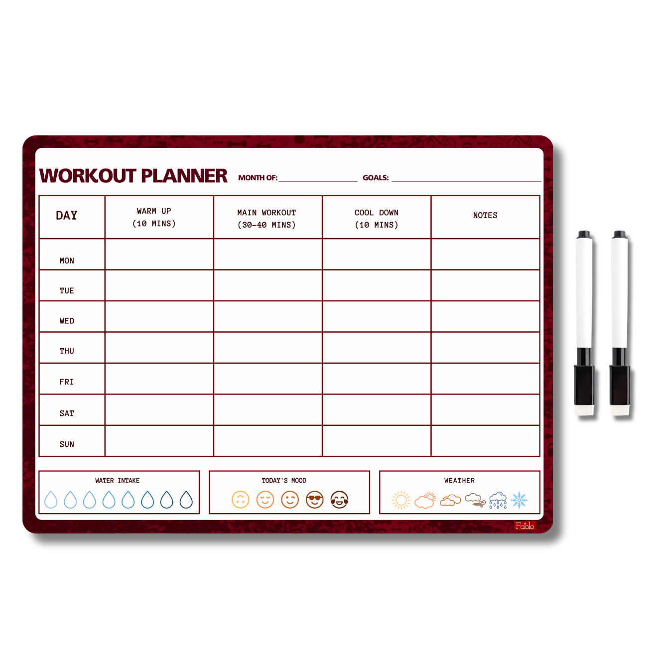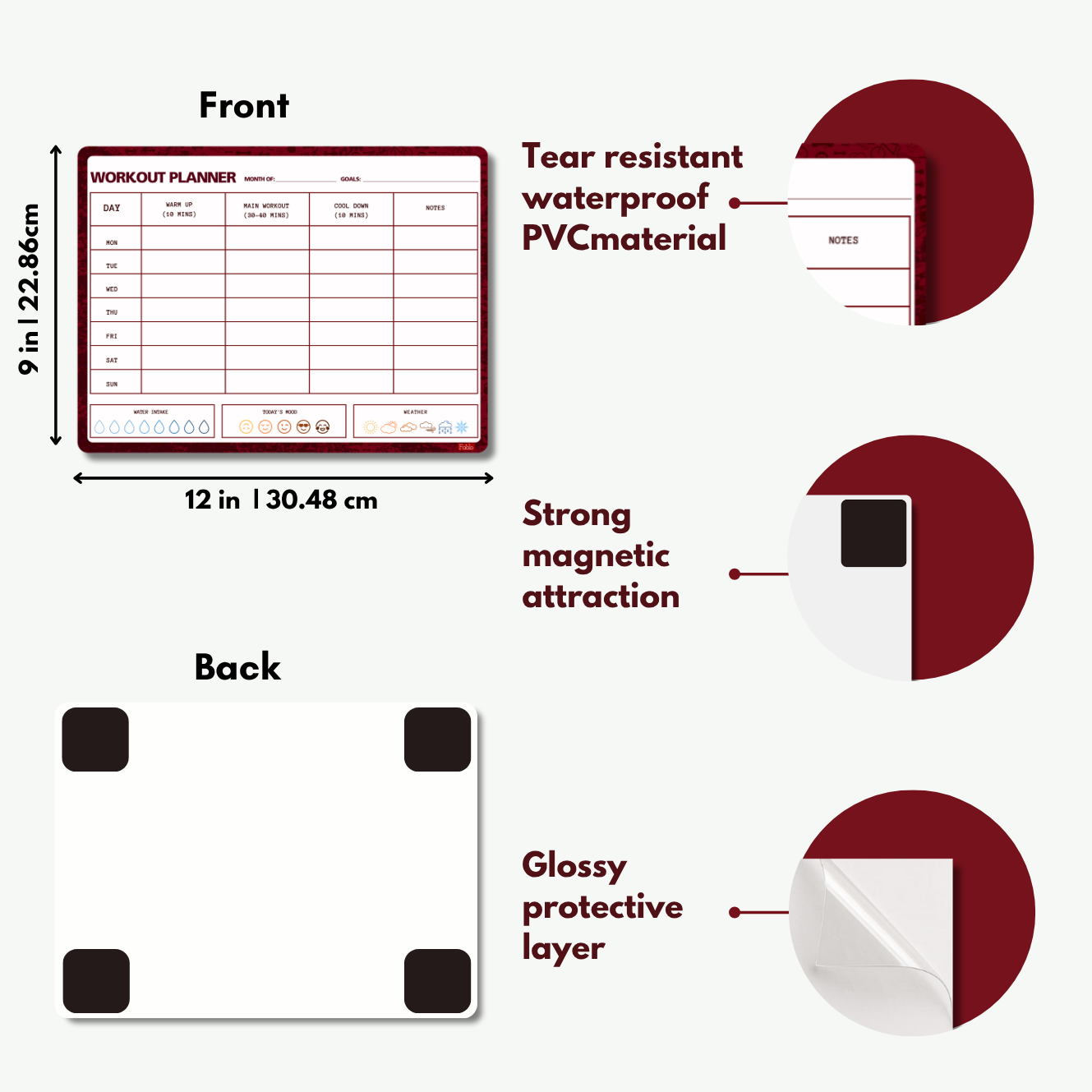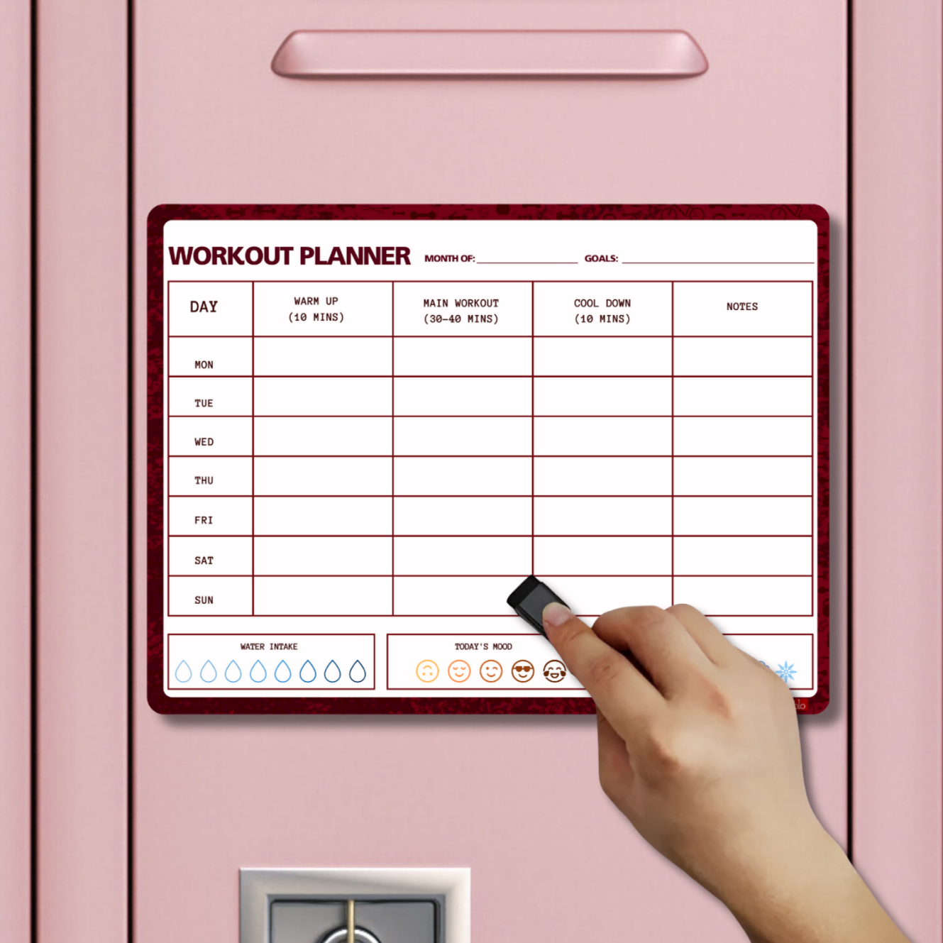 I love how this planner has separate sections for warm-up, main workout, and cool-down. The water intake and mood tracker are great additions. The magnet is very strong and fits perfectly on my fridge. Must buy for fitness lovers.