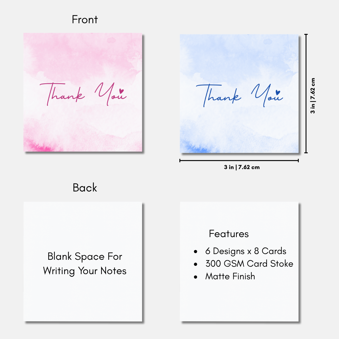 - COMPACT SIZE: Each square card measures 7.62 x 7.62 cm, making them perfectly sized for gifting, packaging inserts, or personal notes.