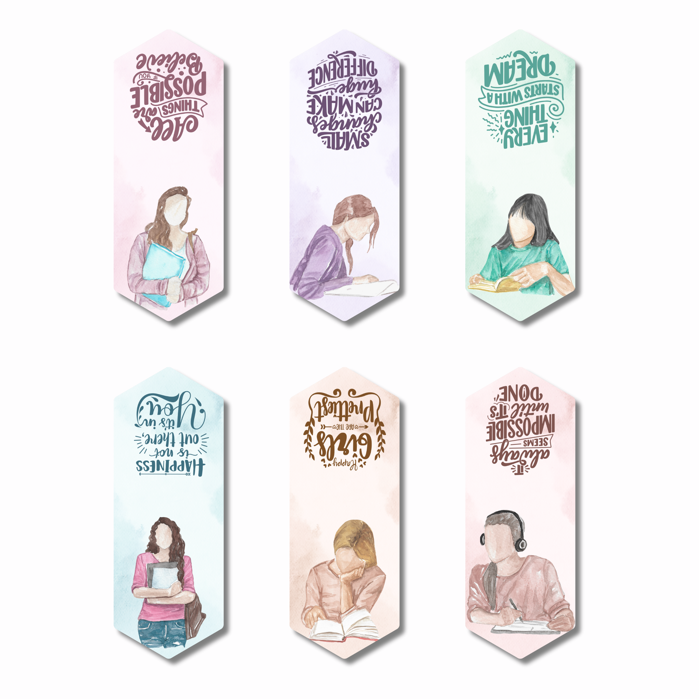 - ARTISTIC WATERCOLOUR ILLUSTRATIONS: Set of 6 bookmarks featuring beautiful watercolour student-themed designs in soft pastel shades for aesthetic appeal