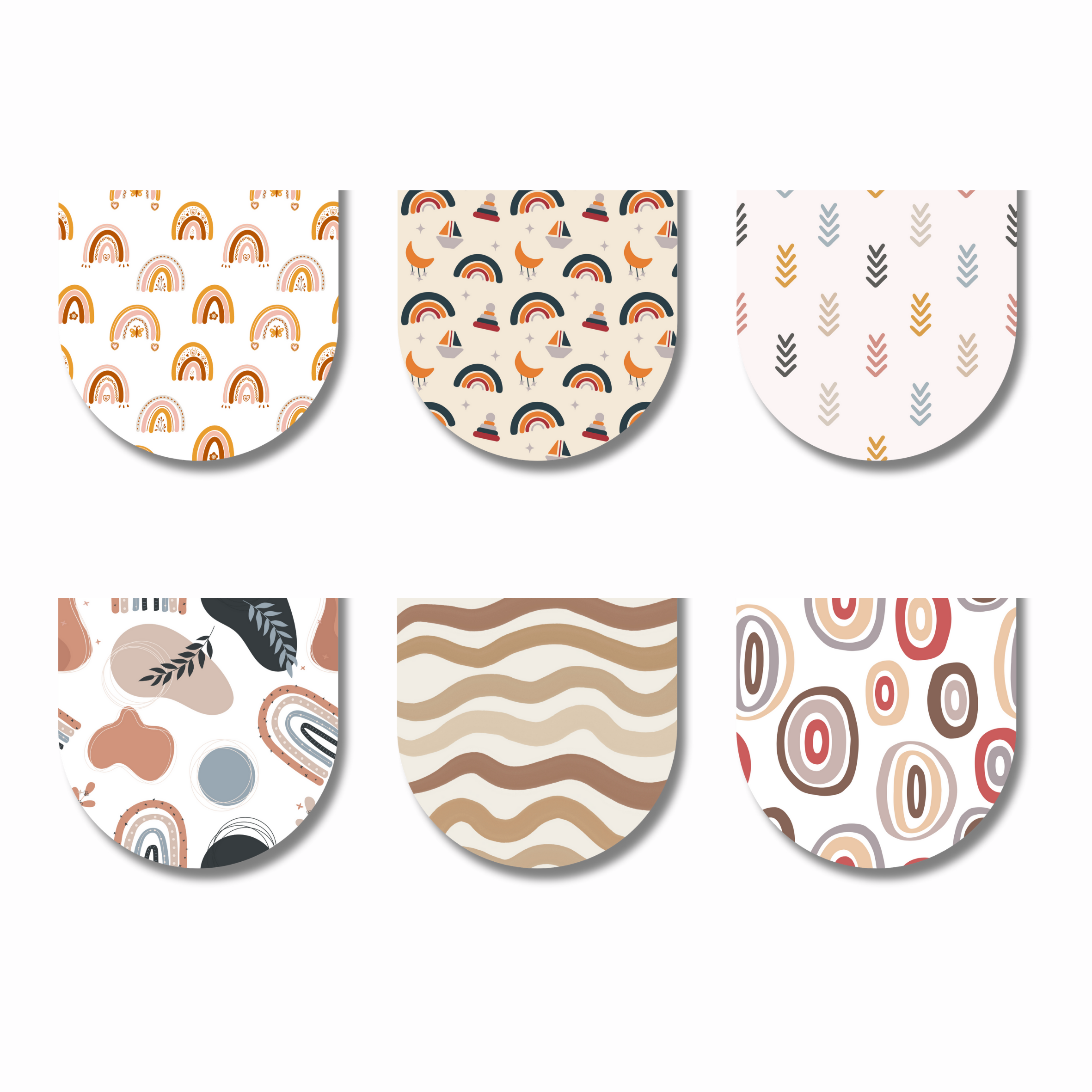 • Beautiful Design Variety: Set of 6 magnetic bookmarks featuring charming boho rainbow and abstract patterns including rainbows, arrows, waves, and geometric designs