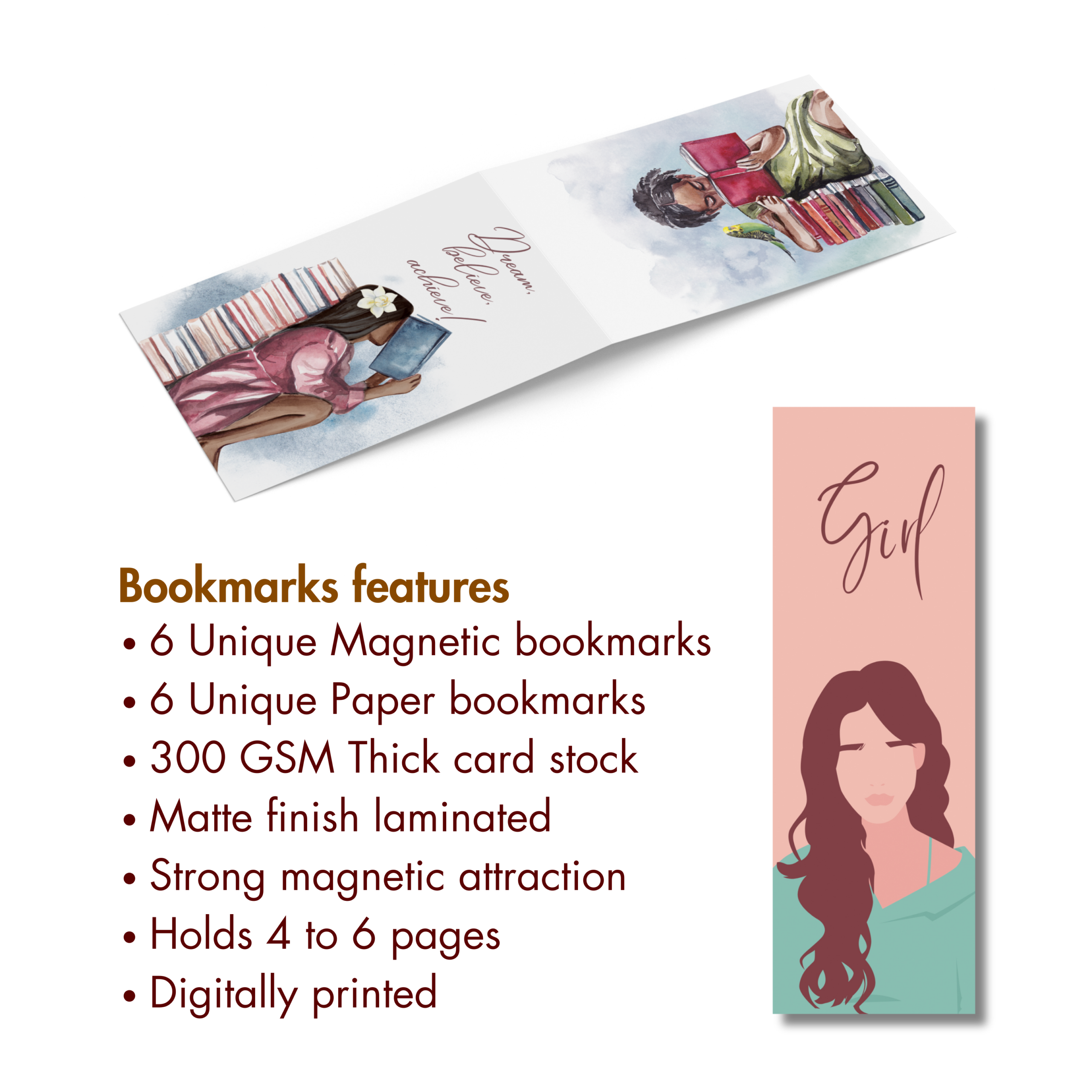 - Inspirational Designs: This 300 GSM set of 12 decorative bookends features charming illustrations of women in various uplifting scenarios, celebrating their strength and resilience.